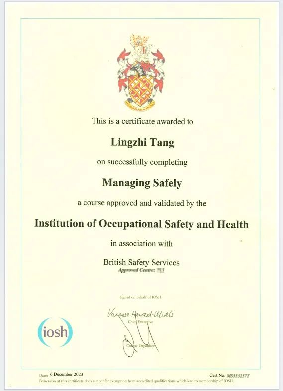 英國職業(yè)安全與健康協(xié)會——IOSH Managing Safely課程